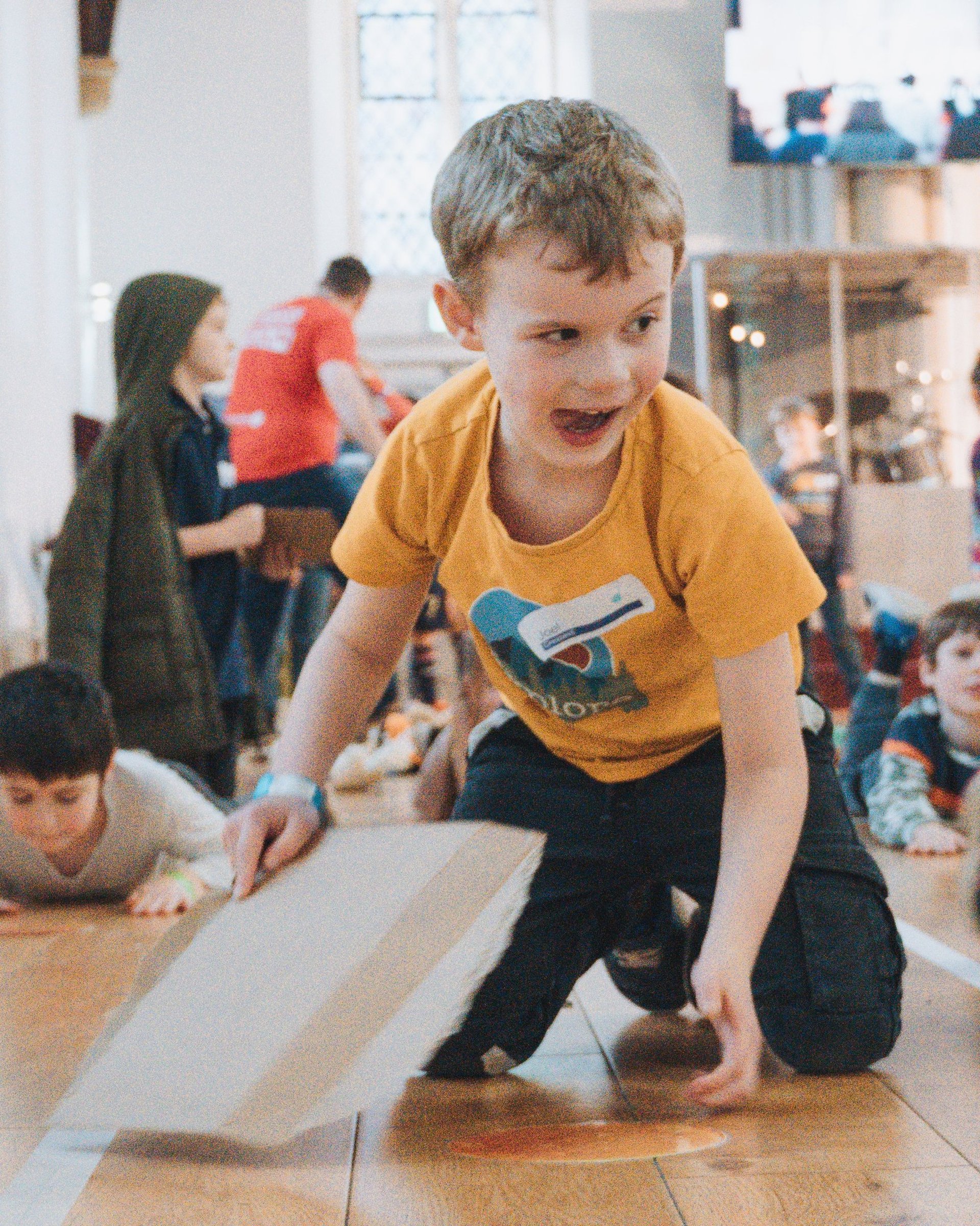 Our under 2s currently have access to a creche space manned by parents, or you can hear the talk and play with your child behind the glass doors in the square.